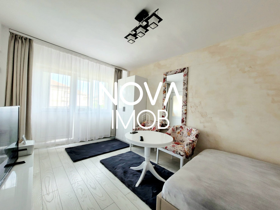 Agentia Nova Imob va propune spre inchiriere o garsoniera moderna si cocheta, cu suprafata de 27 mp utili plus un balcon de aproximativ 4 mp, aflata la etajul 3 al unei cladiri cu regimul de inaltime P + 4, bloc izolat termic.