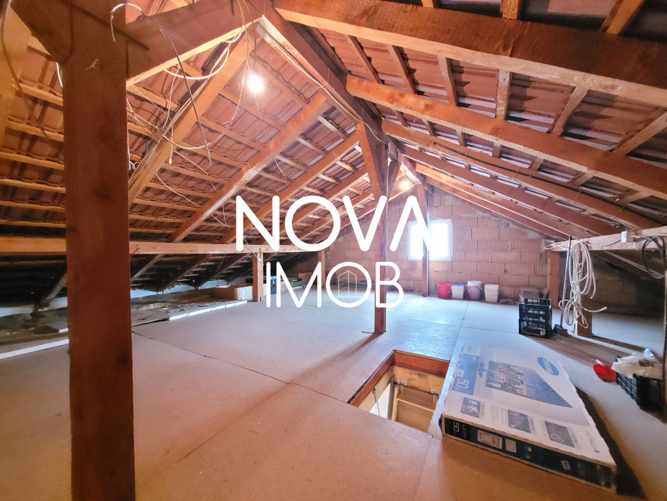 Pod podit pe toata suprafata casei, cu fereastra (spatiu ideal de depozitare sau amenajare ulterioara)